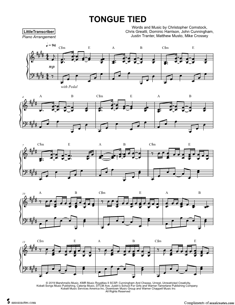 Many of the arrangements on Musicnotes have transpositions available, typically in C Major, as well as 3 sharps and 3 flats. If you do not see your desired key, you can request a transposition by reaching out to Customer Support.