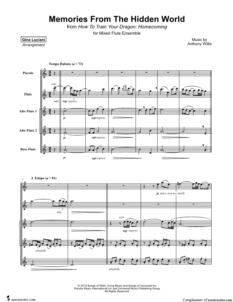 Memories from the Hidden World (from How to Train Your Dragon: Homecoming) - Mixed Flute Ensemble |