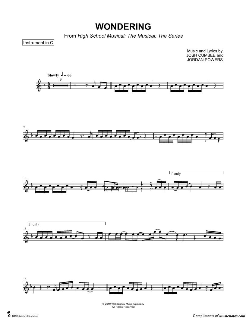 Wondering - C Instrument & Piano (from High School Musical: The Musical: The Series)