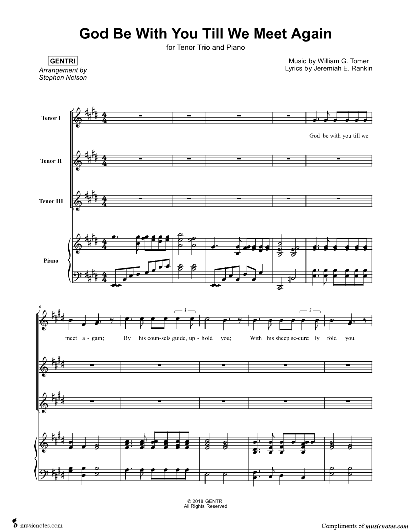 God Be With You Till We Meet Again - Tenor Trio & Piano |