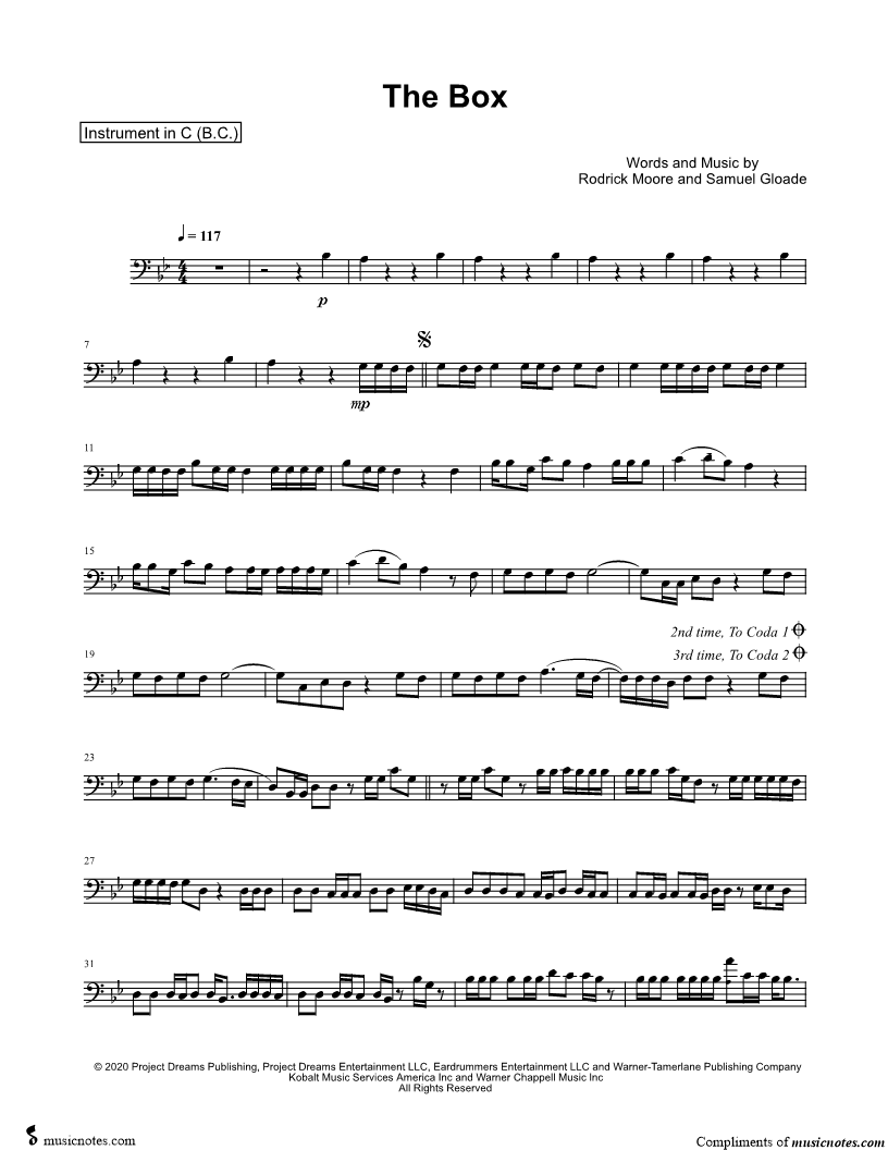 Bass Clef Instrument, range: Bb2-A4 (Trombone, Bassoon, Baritone Horn or Euphonium, Cello or Double Bass) | |