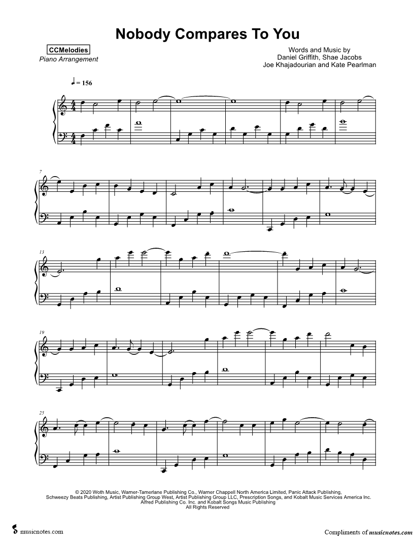Many of the arrangements on Musicnotes have transpositions available, typically in C Major, as well as 3 sharps and 3 flats. If you do not see your desired key, you can request a transposition by reaching out to Customer Support.