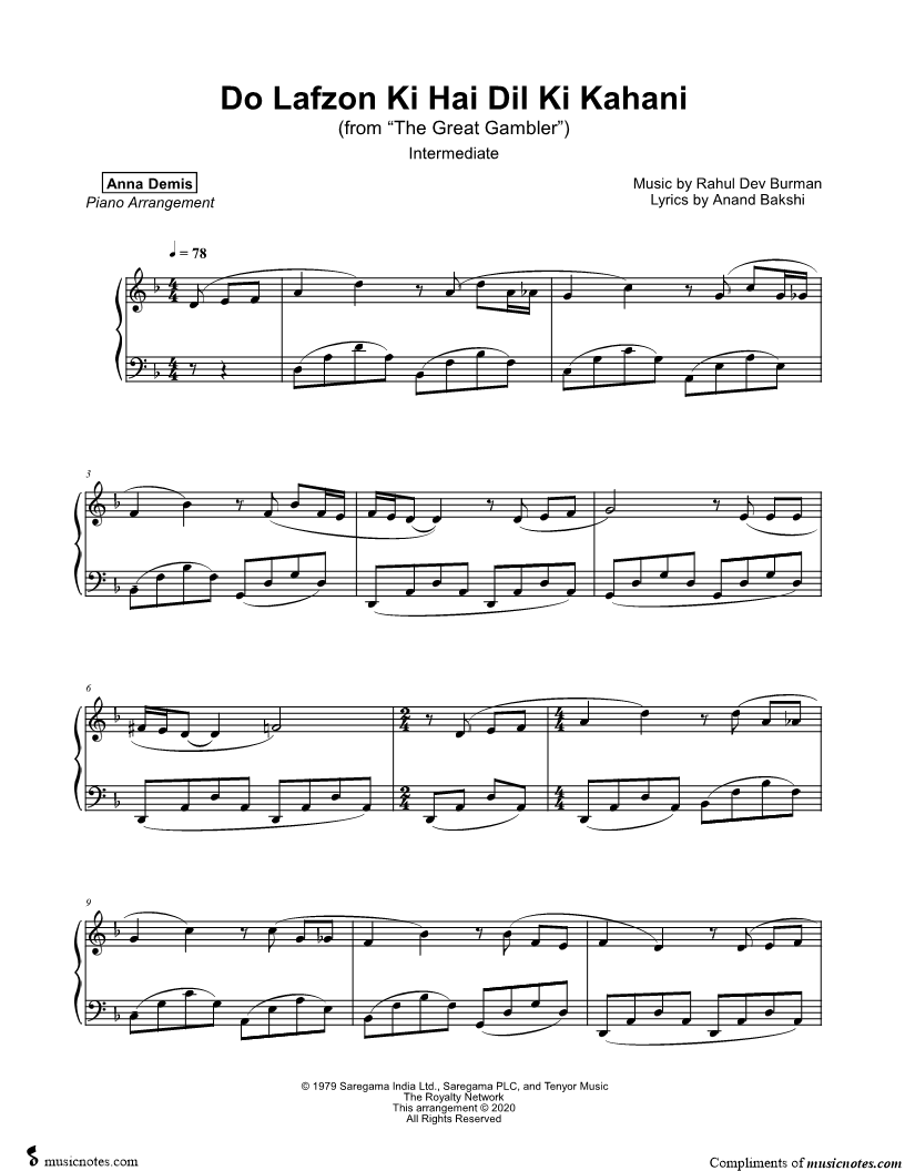 Do Lafzon Ki Hai Dil Ki Kahani [intermediate] |