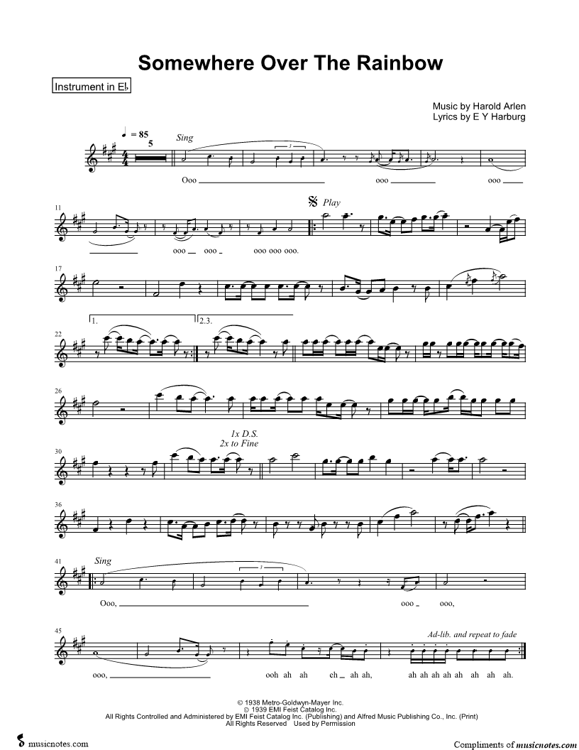 Over the Rainbow - Eb Instrument |
