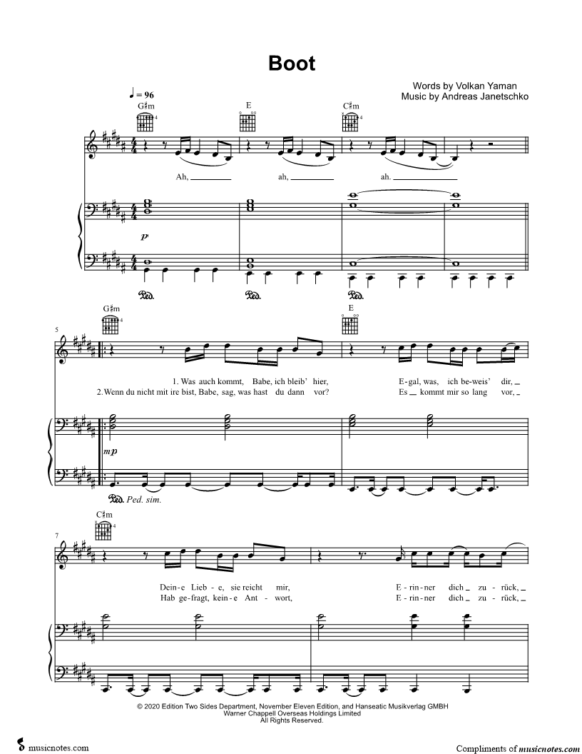 Musicnotes sells a wide variety of digital sheet music products including Singer Pros, Beginner Notes, Choral music, Piano Solos, Lead Sheets, Piano/Vocal/Guitar, Solo and Accompaniment, and fretted instrument tablature.