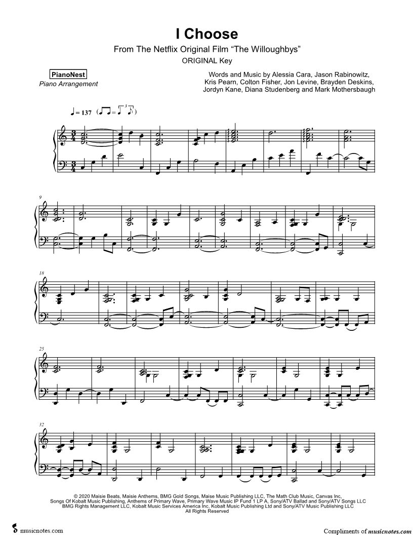 Many of the arrangements on Musicnotes have transpositions available, typically in C Major, as well as 3 sharps and 3 flats. If you do not see your desired key, you can request a transposition by reaching out to Customer Support.
