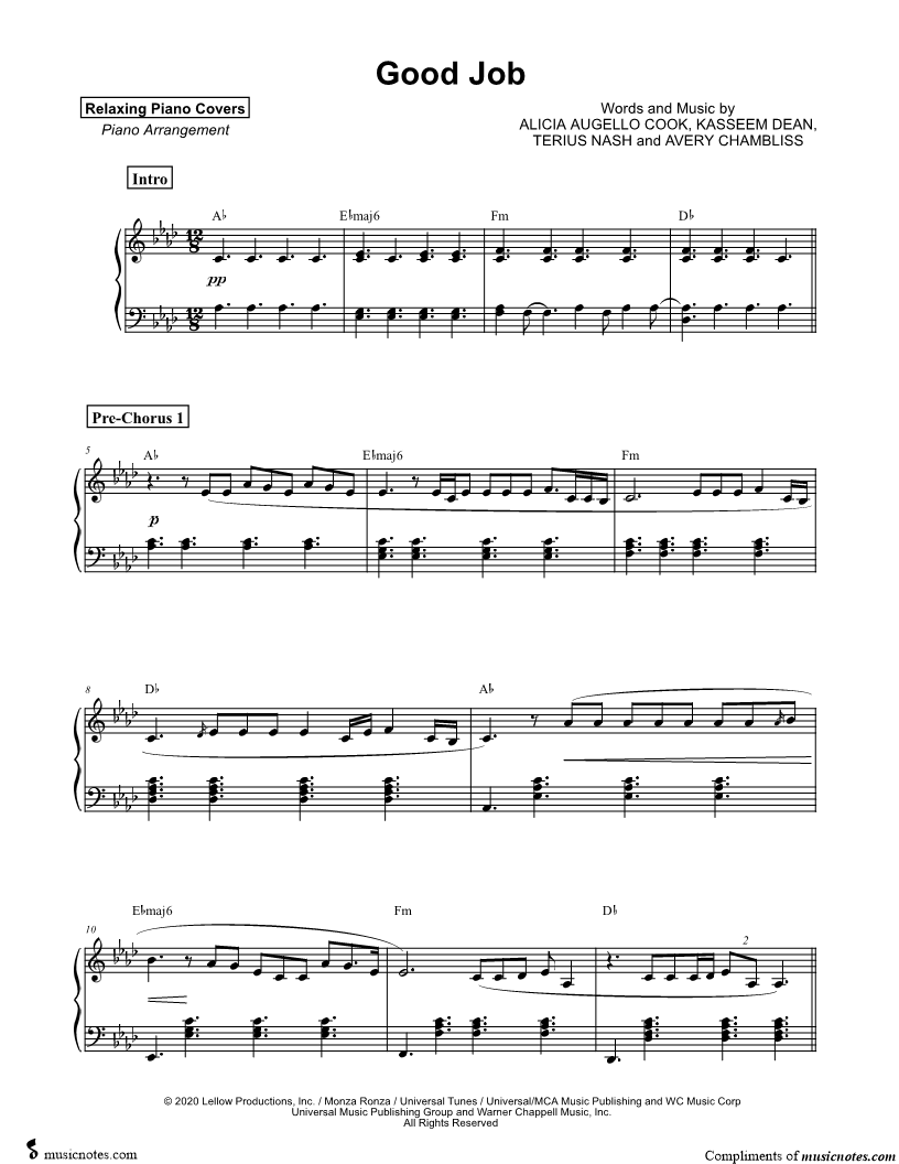 Many of the arrangements on Musicnotes have transpositions available, typically in C Major, as well as 3 sharps and 3 flats. If you do not see your desired key, you can request a transposition by reaching out to Customer Support.