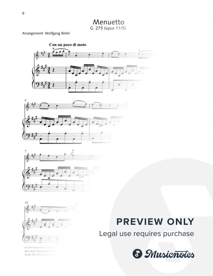 Minuet, Opus 11, No. 5 - Violin & Piano |
