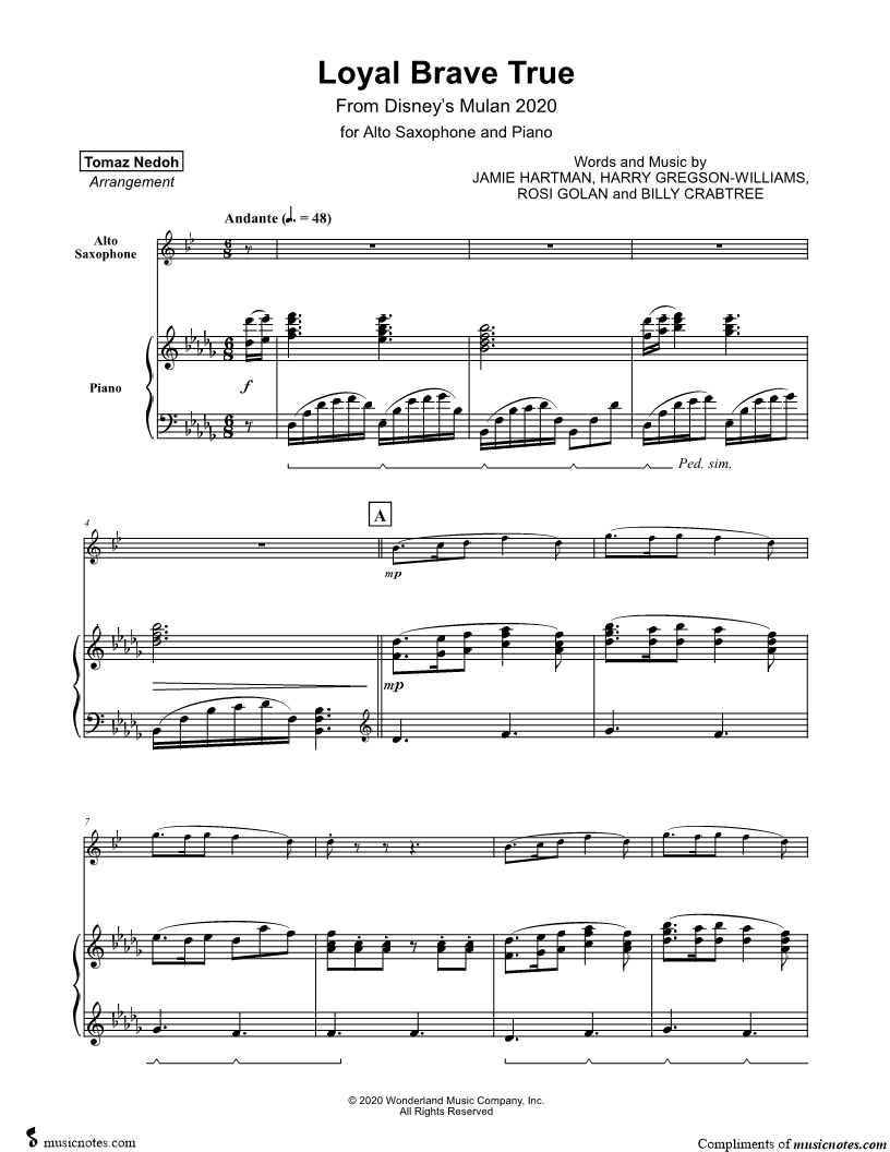 Loyal Brave True - Alto Saxophone & Piano |