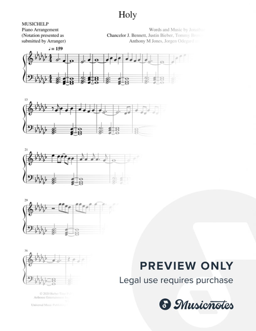 Many of the arrangements on Musicnotes have transpositions available, typically in C Major, as well as 3 sharps and 3 flats. If you do not see your desired key, you can request a transposition by reaching out to Customer Support.