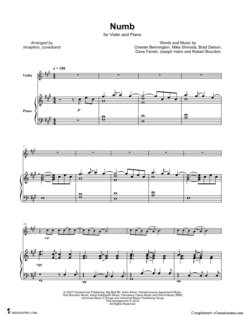Numb - Violin & Piano |