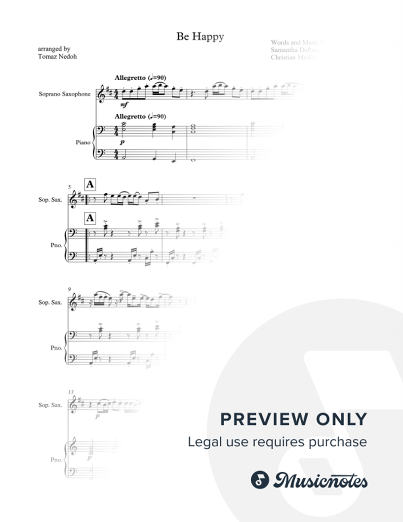 Be Happy - Soprano Saxophone & Piano |