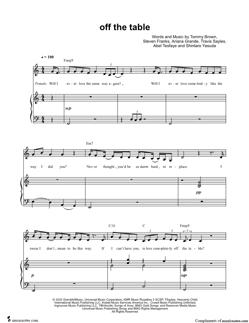 Voice 1, range: E3-E5 or Female Voice Voice 2, range: G3-G5 or Male Voice Piano | |