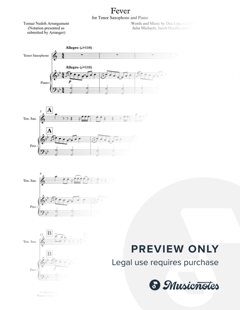 Many of the arrangements on Musicnotes have transpositions available, typically in C Major, as well as 3 sharps and 3 flats. If you do not see your desired key, you can request a transposition by reaching out to Customer Support.