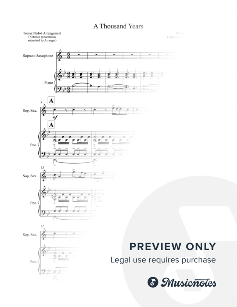 A Thousand Years - Soprano Saxophone & Piano |