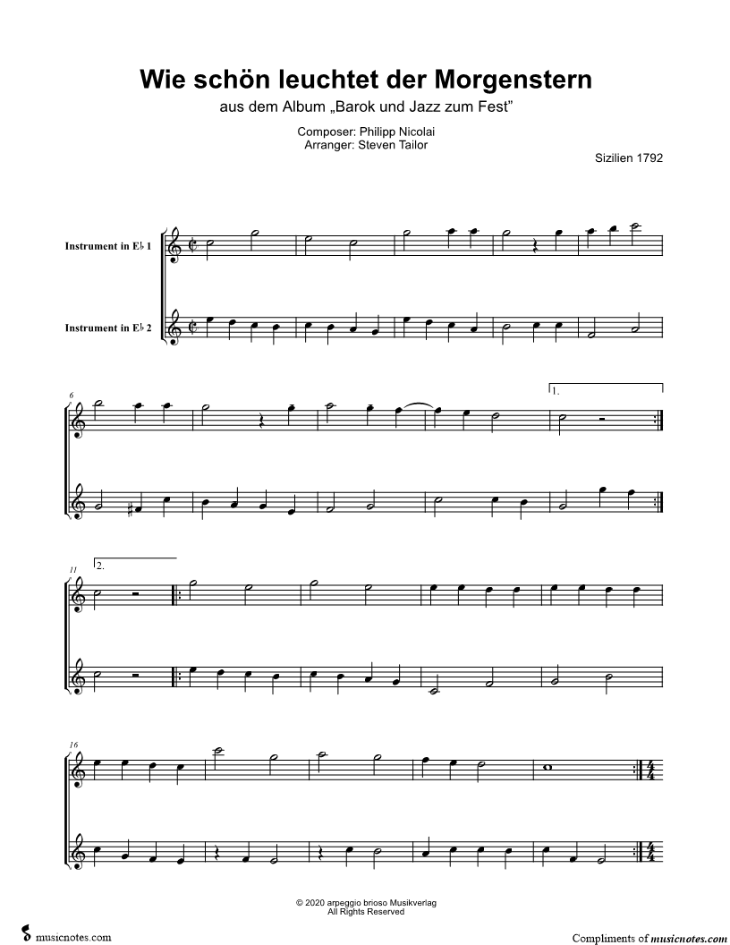 Wie schön leuchtet der Morgenstern - Eb Instrument Duet |
