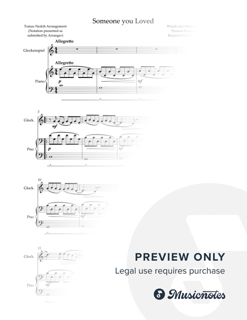Someone You Loved - Glockenspiel & Piano |
