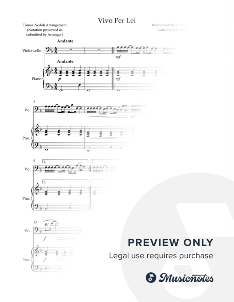 Vivo per Lei - Cello & Piano |