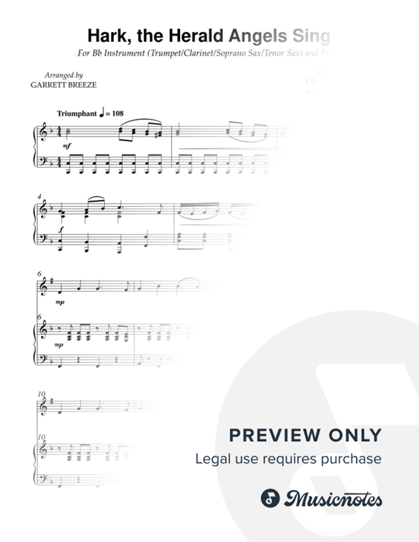 Hark! The Herald Angels Sing - Bb Instrument & Piano |