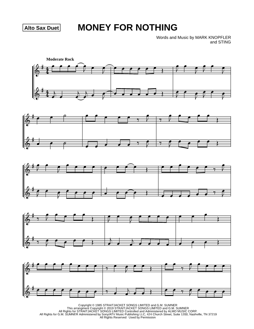 Money for Nothing - Alto Saxophone Duet |