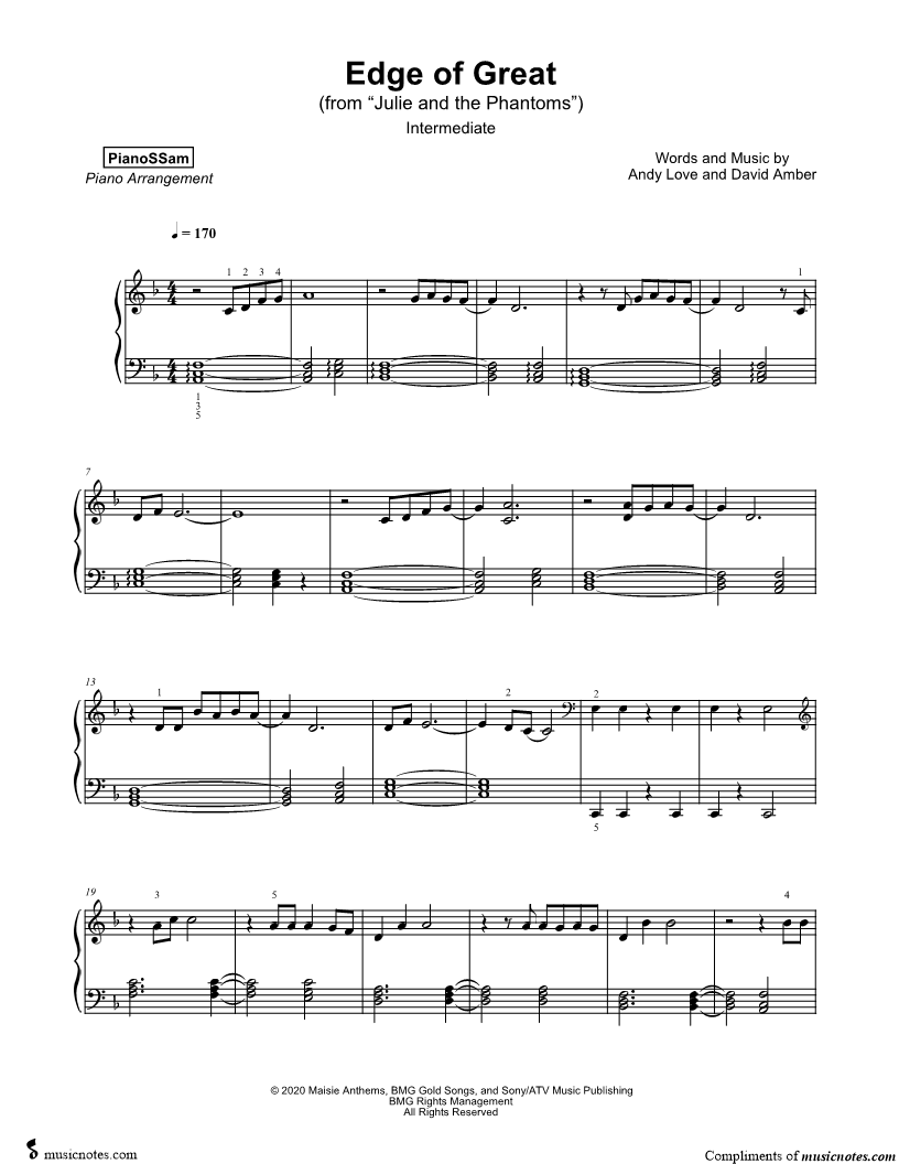 Musicnotes sells a wide variety of digital sheet music products including Singer Pros, Beginner Notes, Choral music, Piano Solos, Lead Sheets, Piano/Vocal/Guitar, Solo and Accompaniment, and fretted instrument tablature.