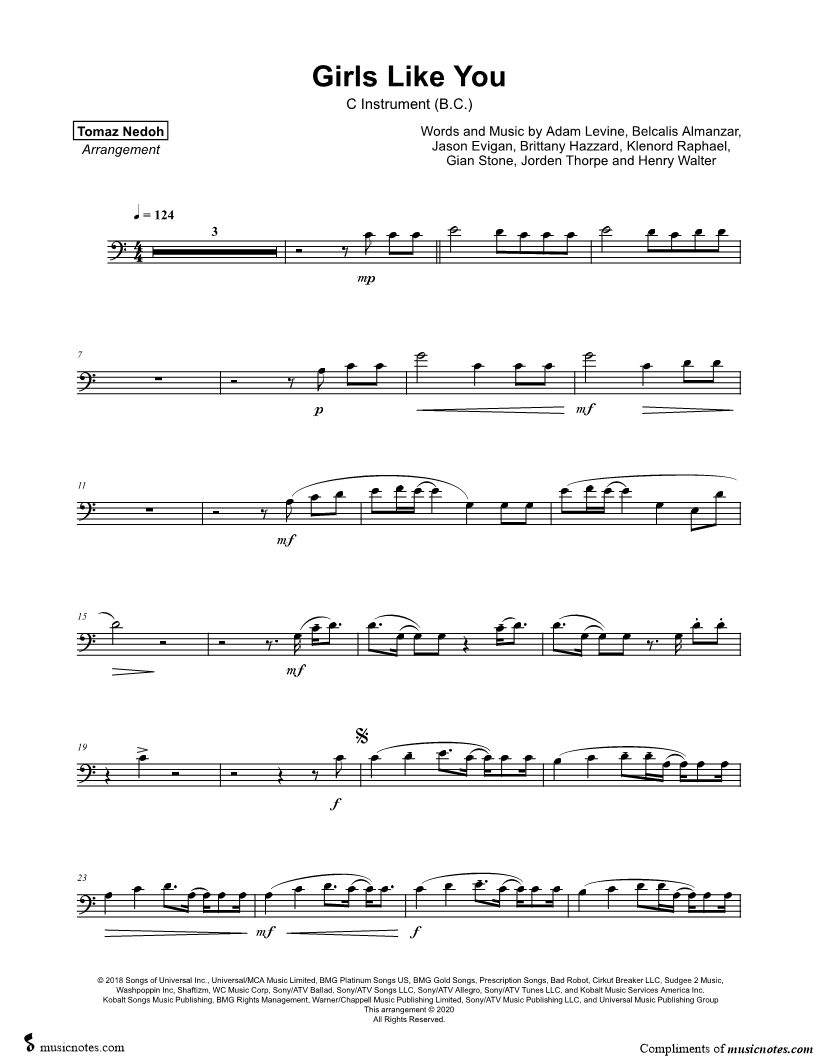 Bass Clef Instrument, range: C3-G4 (Double Bass, Baritone Horn, Cello, Trombone or Bassoon) | |