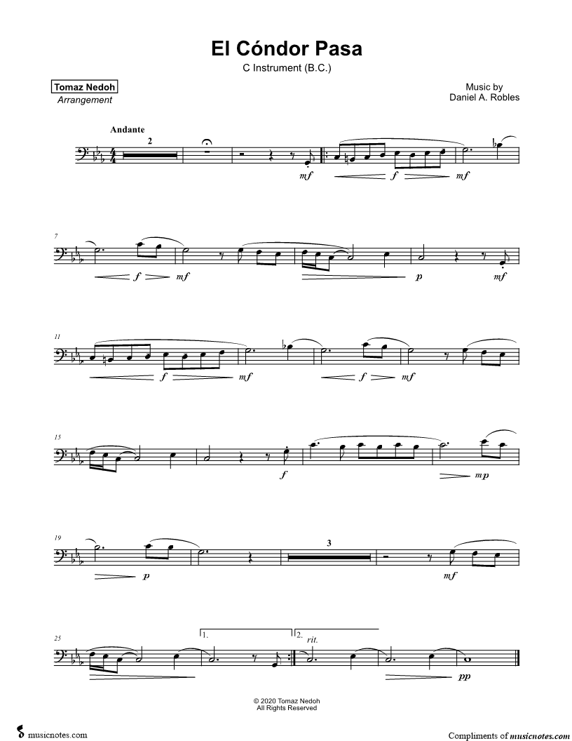 Bass Clef Instrument, range: G2-Eb4 (Trombone, Bassoon, Baritone Horn or Euphonium, Cello or Double Bass) | |
