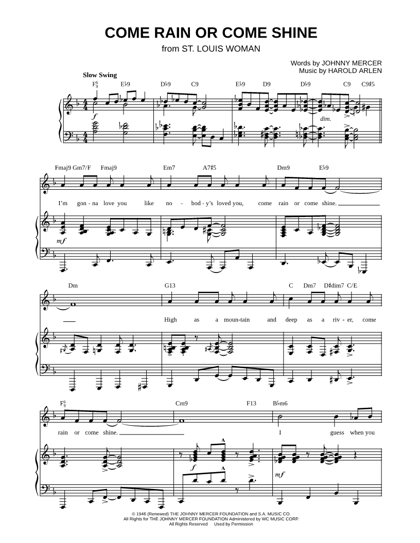 I'm gonna love you like nobody's loved you, come rain or come shine. |