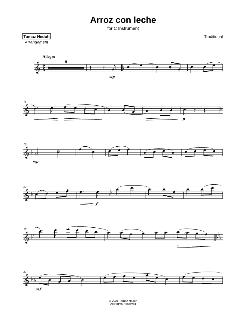 Arroz con Leche - C Instrument |
