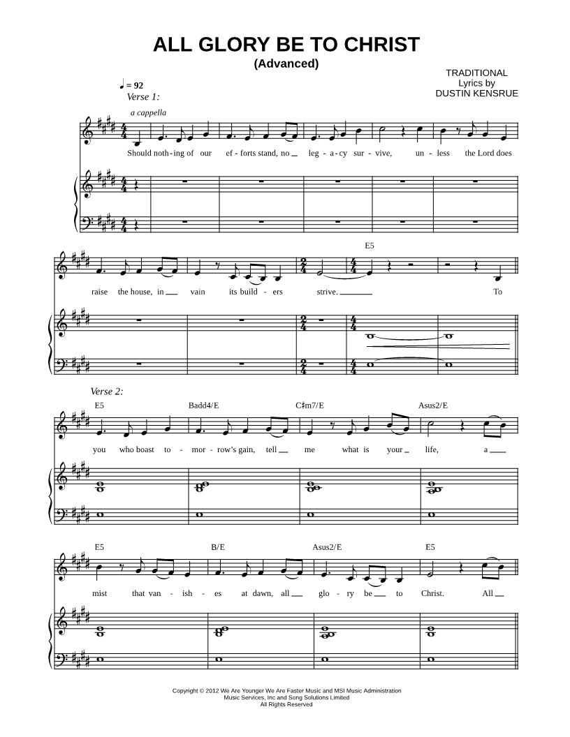 Should nothing of our efforts stand, no legacy survive, unless the Lord does raise the house, in vain its builders strive. |