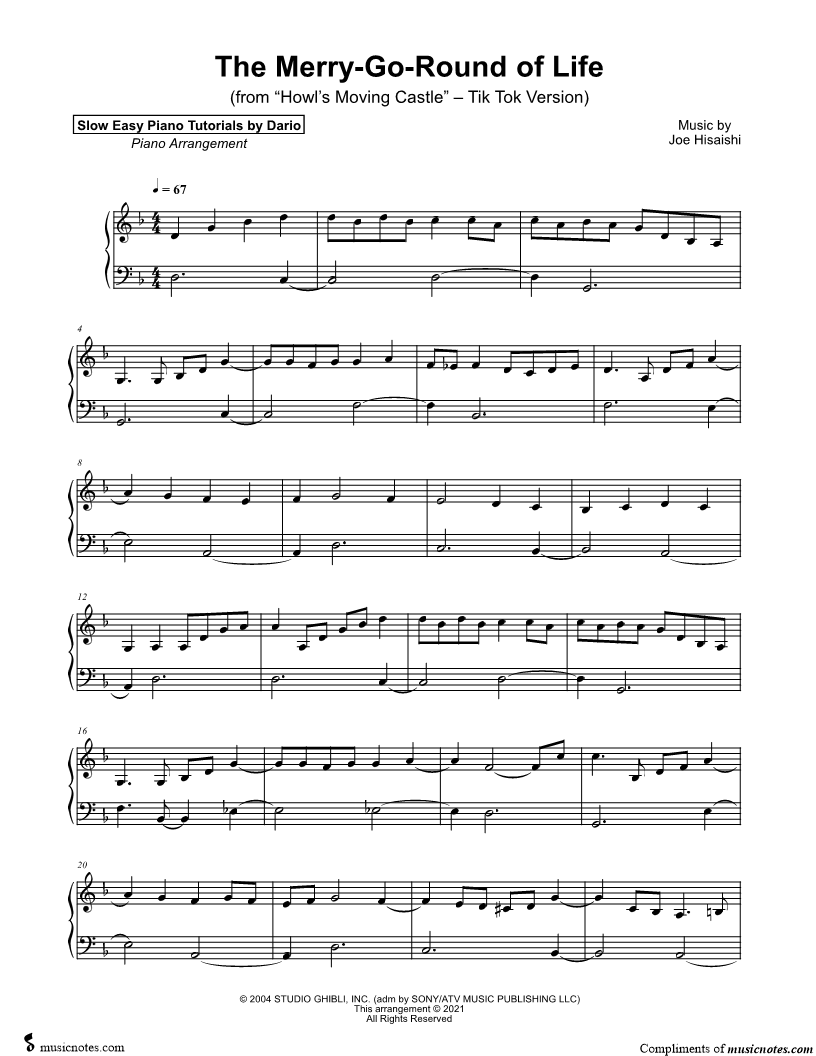 The Merry-Go-Round of Life (Tik Tok Version) [Slow Easy Piano Tutorial] |