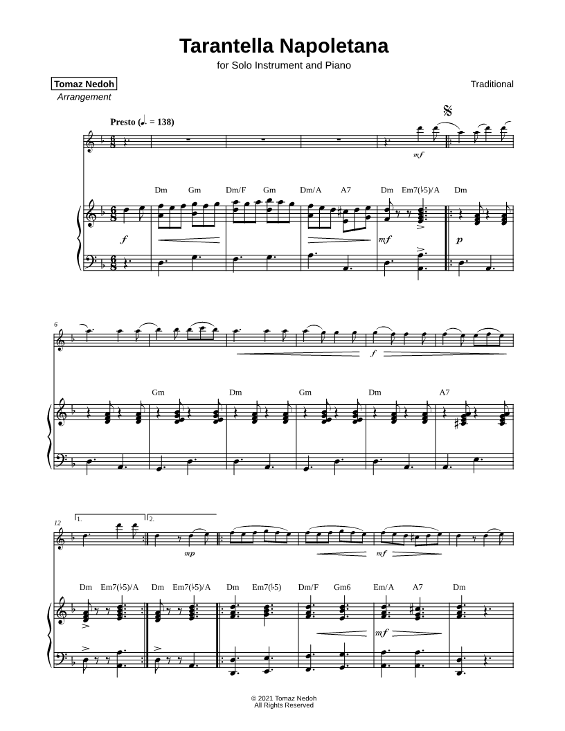 Tarantella Napoletana - Bass Clef Instrument & Piano