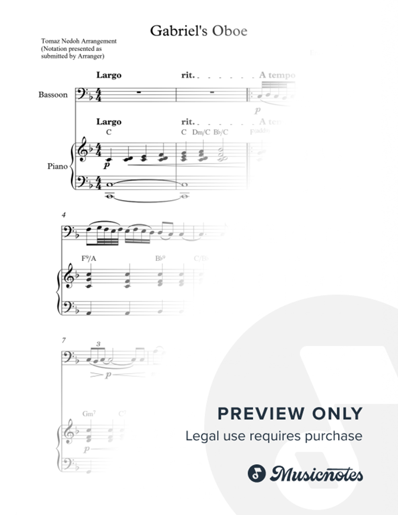 Gabriel's Oboe - Bassoon & Piano |