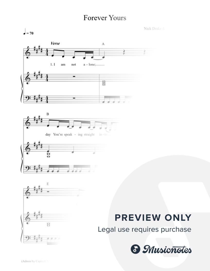 Many of the arrangements on Musicnotes have transpositions available, typically in C Major, as well as 3 sharps and 3 flats. If you do not see your desired key, you can request a transposition by reaching out to Customer Support.