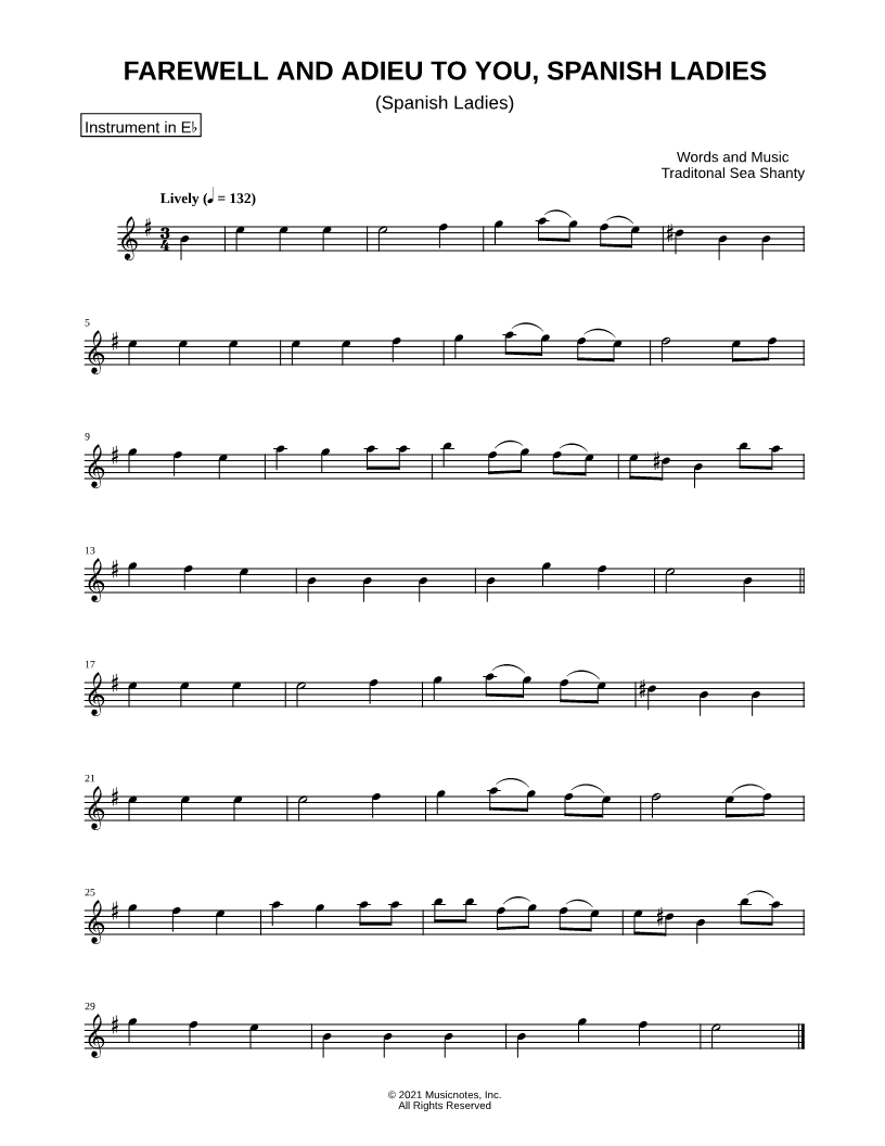 Spanish Ladies - Eb Instrument |