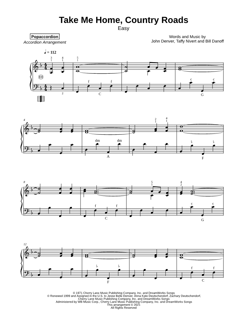Take Me Home, Country Roads [easy] |