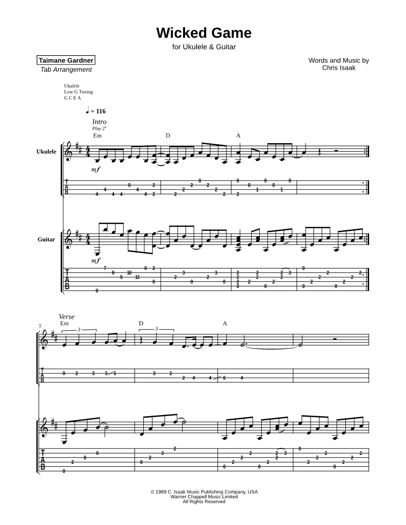 Wicked Game - Ukulele & Guitar |