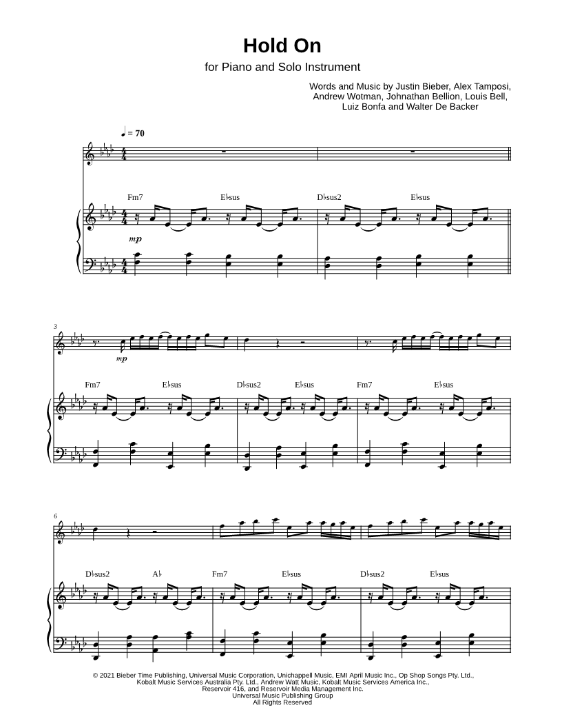 Piano Accompaniment C Instrument, range: C5-Eb6 Violin Oboe Flute Recorder | |