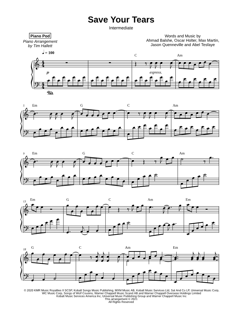 Save Your Tears [intermediate] |