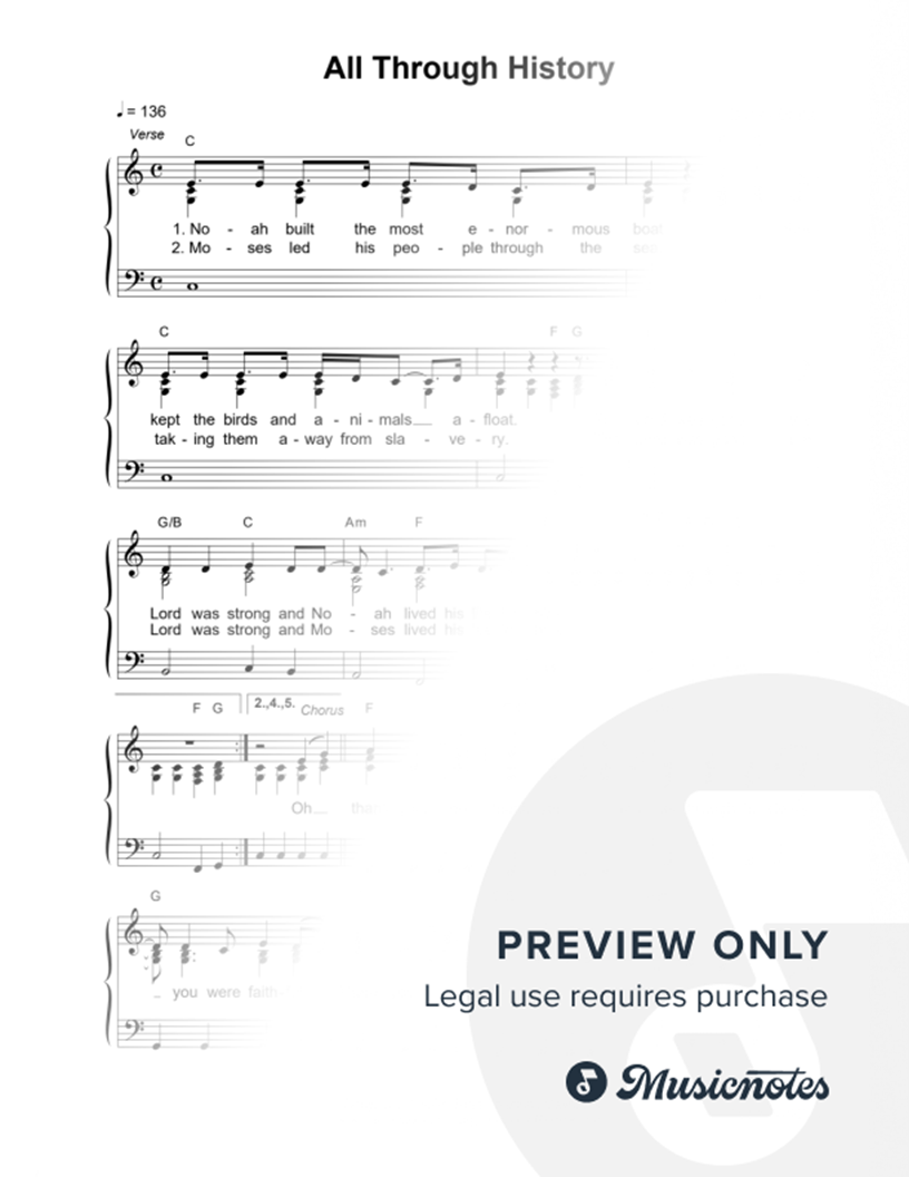 Many of the arrangements on Musicnotes have transpositions available, typically in C Major, as well as 3 sharps and 3 flats. If you do not see your desired key, you can request a transposition by reaching out to Customer Support.