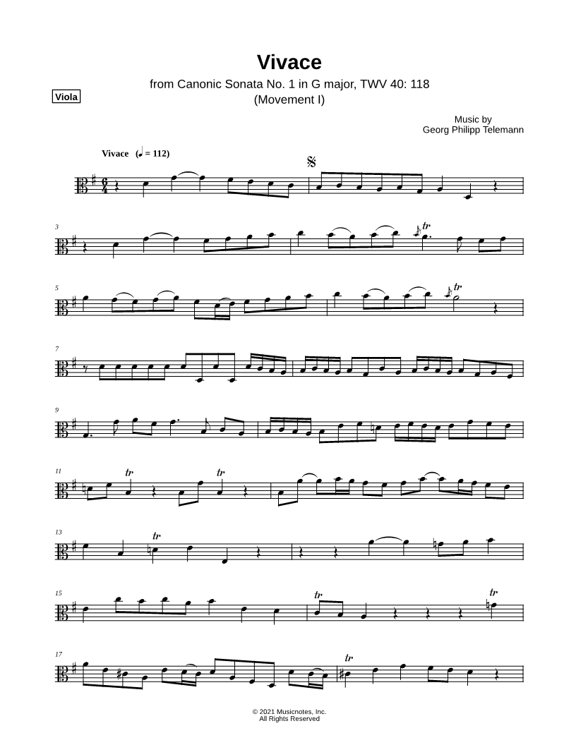 Canonic Sonata no. 1, TWV 40: 118: I. Vivace |