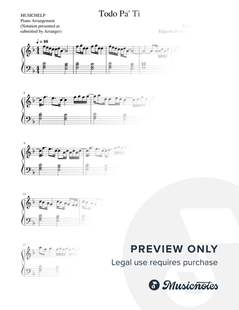 Many of the arrangements on Musicnotes have transpositions available, typically in C Major, as well as 3 sharps and 3 flats. If you do not see your desired key, you can request a transposition by reaching out to Customer Support.