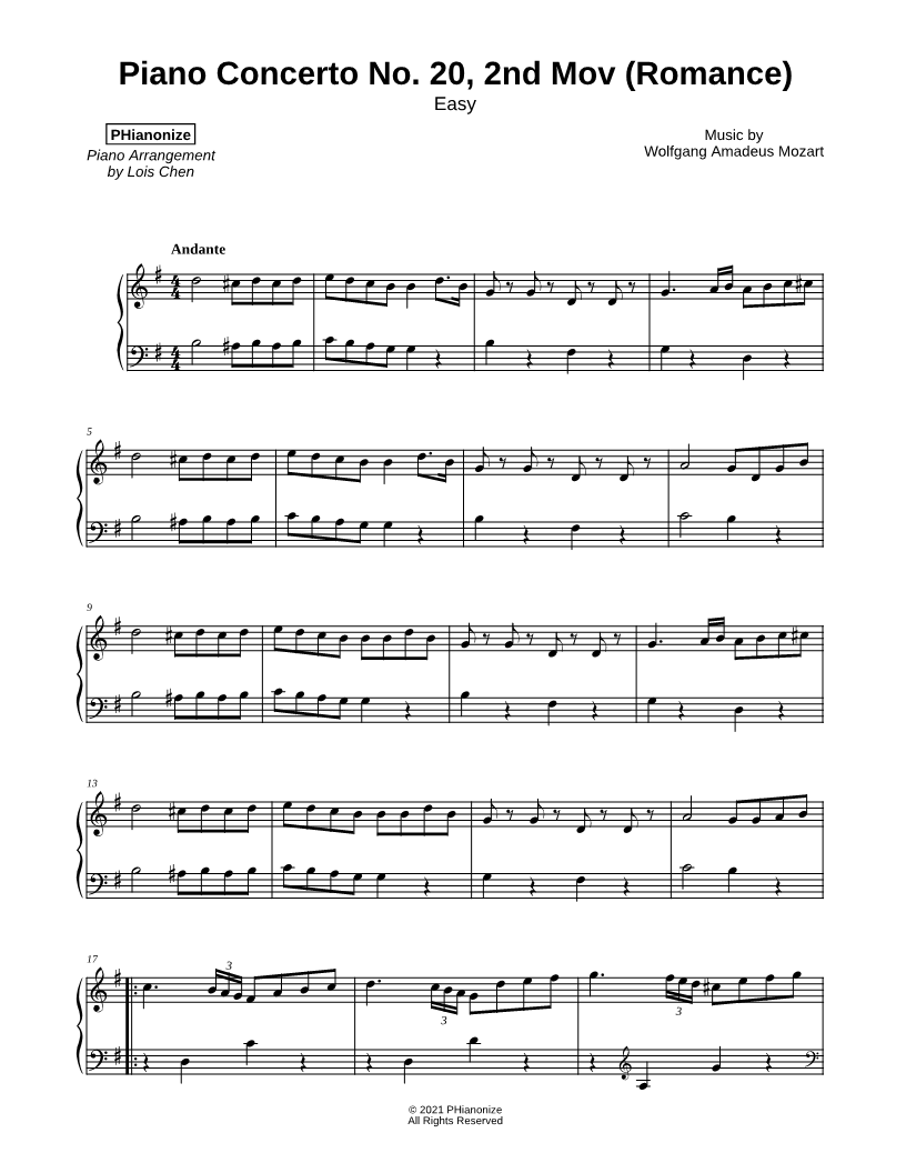 Piano Concerto No. 20 in D Minor, K. 466: II. Romance [easy] |