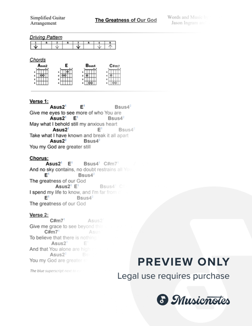Many of the arrangements on Musicnotes have transpositions available, typically in C Major, as well as 3 sharps and 3 flats. If you do not see your desired key, you can request a transposition by reaching out to Customer Support.