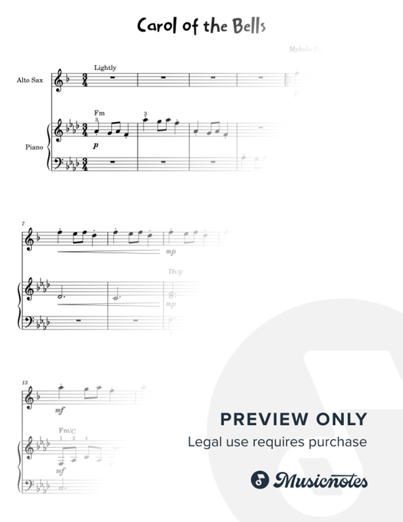Carol of the Bells - Alto Saxophone & Piano |
