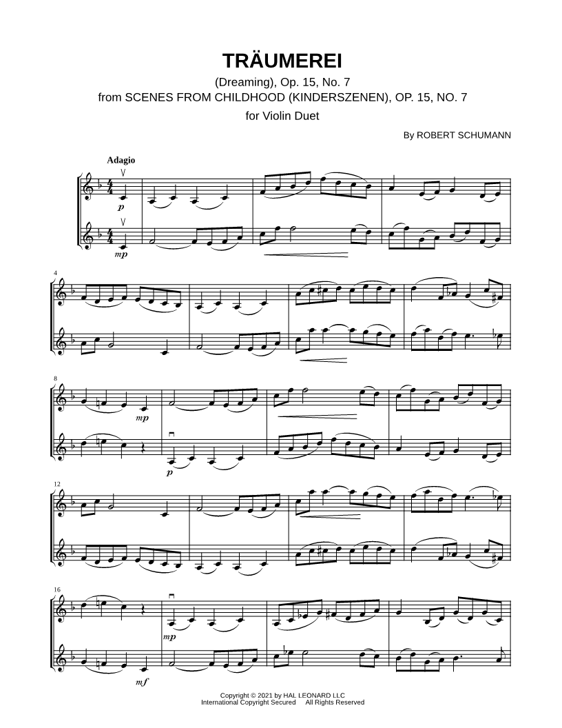 Kinderszenen, Op. 15: VII. Träumerei - Violin Duet |
