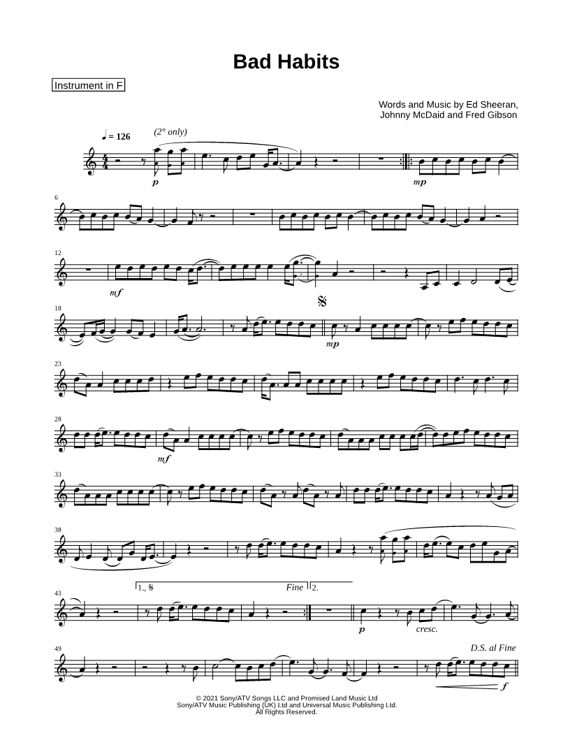 Bad Habits - F Instrument |