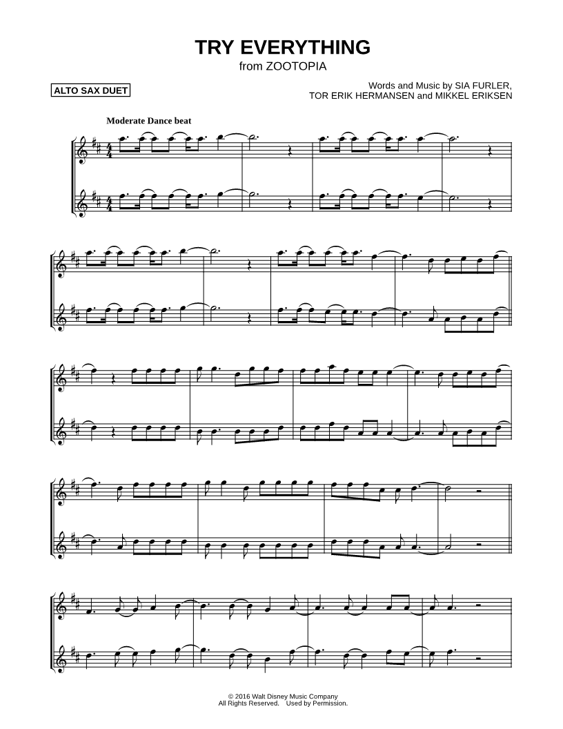 Try Everything - Alto Saxophone Duet |