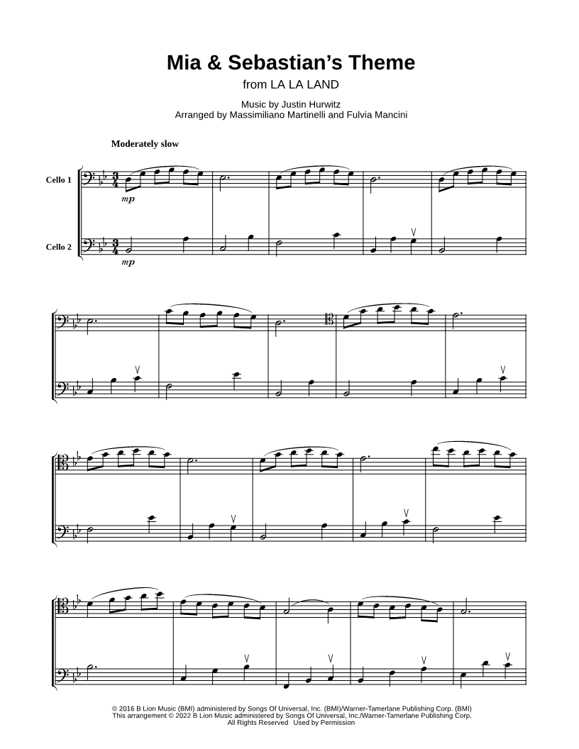 Mia & Sebastian's Theme - Cello Duet |