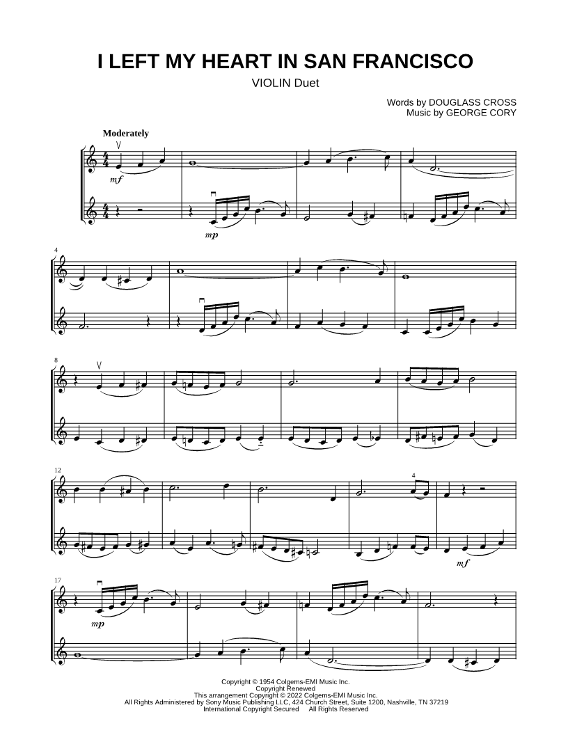 I Left My Heart in San Francisco - Violin Duet |